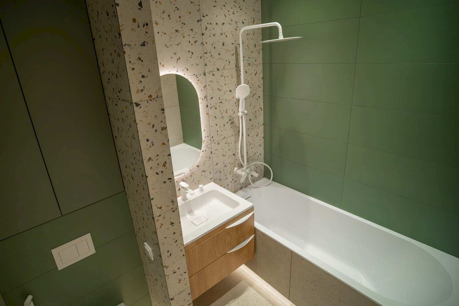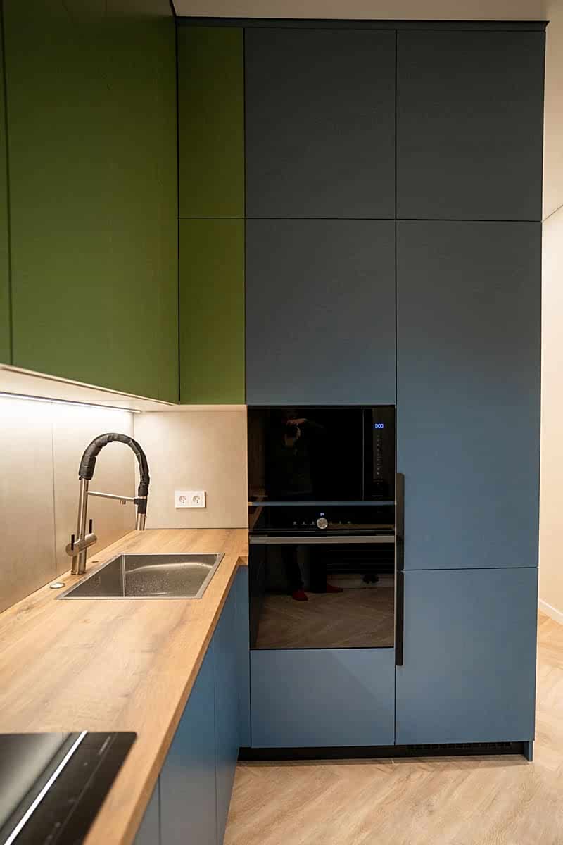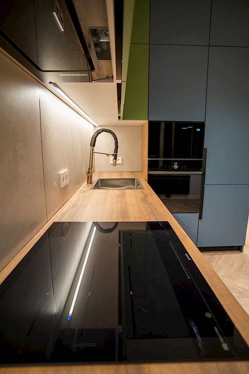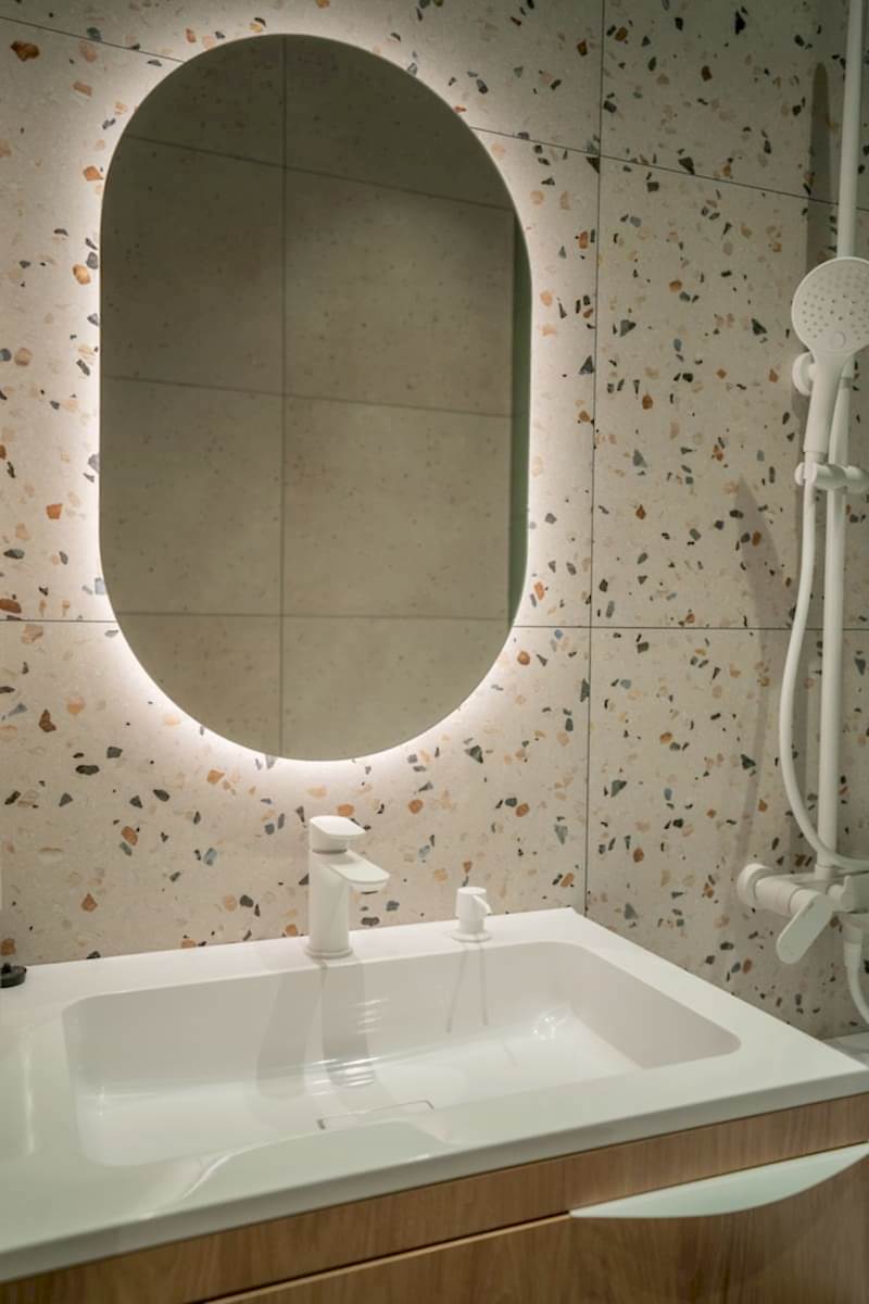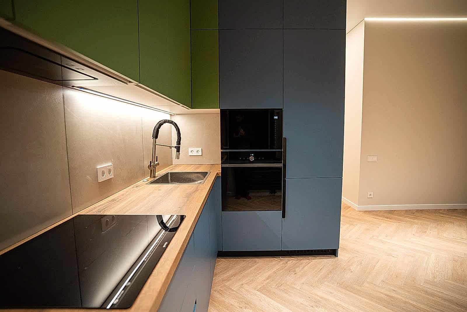 Площадь: 93 м², срок: 5 мес., общая стоимость ремонтных работ с материалом, кухонным гарнитуром и мебелью для ванных комнат: 8,3 млн. ₸.