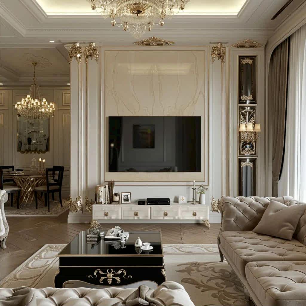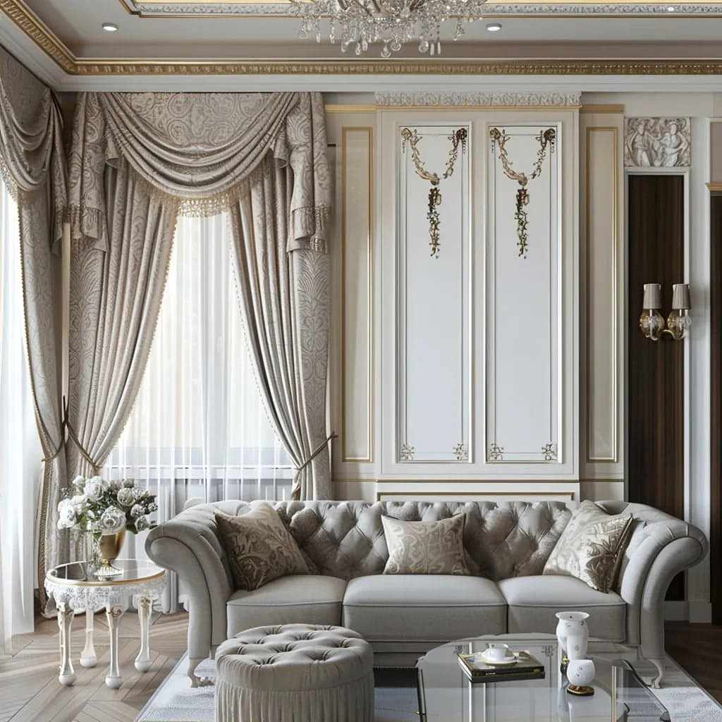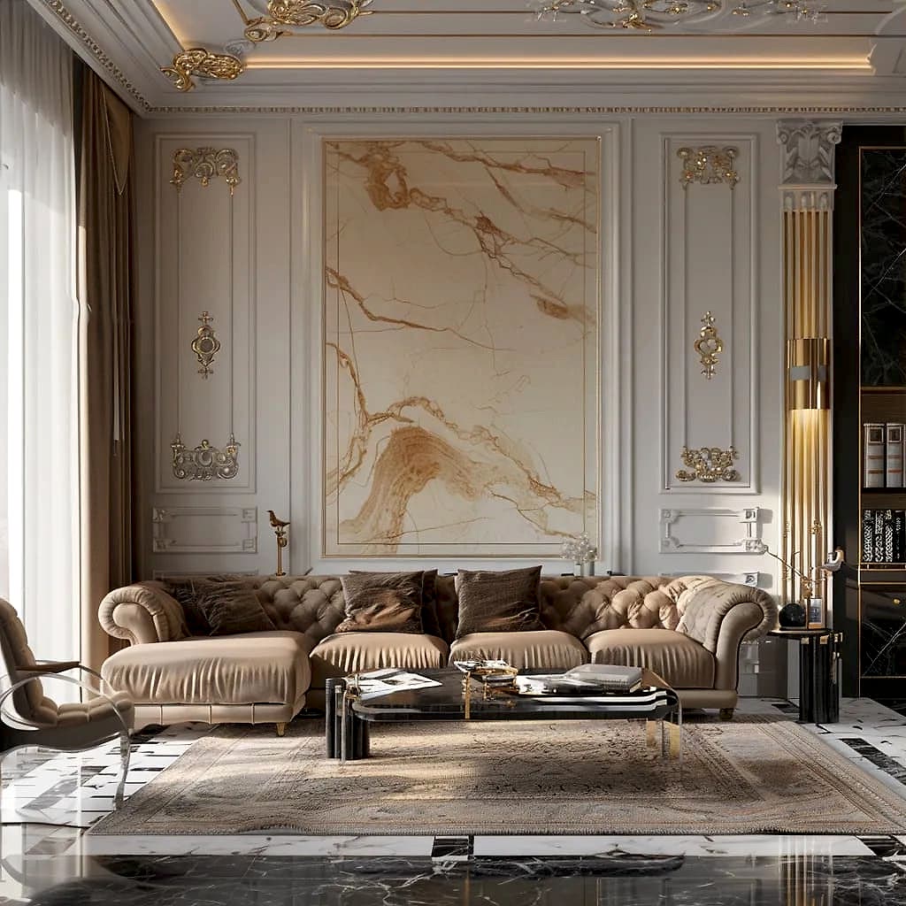 Этот стиль идеально подходит для создания атмосферы роскоши и величия в интерьере, при этом сохраняя утонченность и Пинап