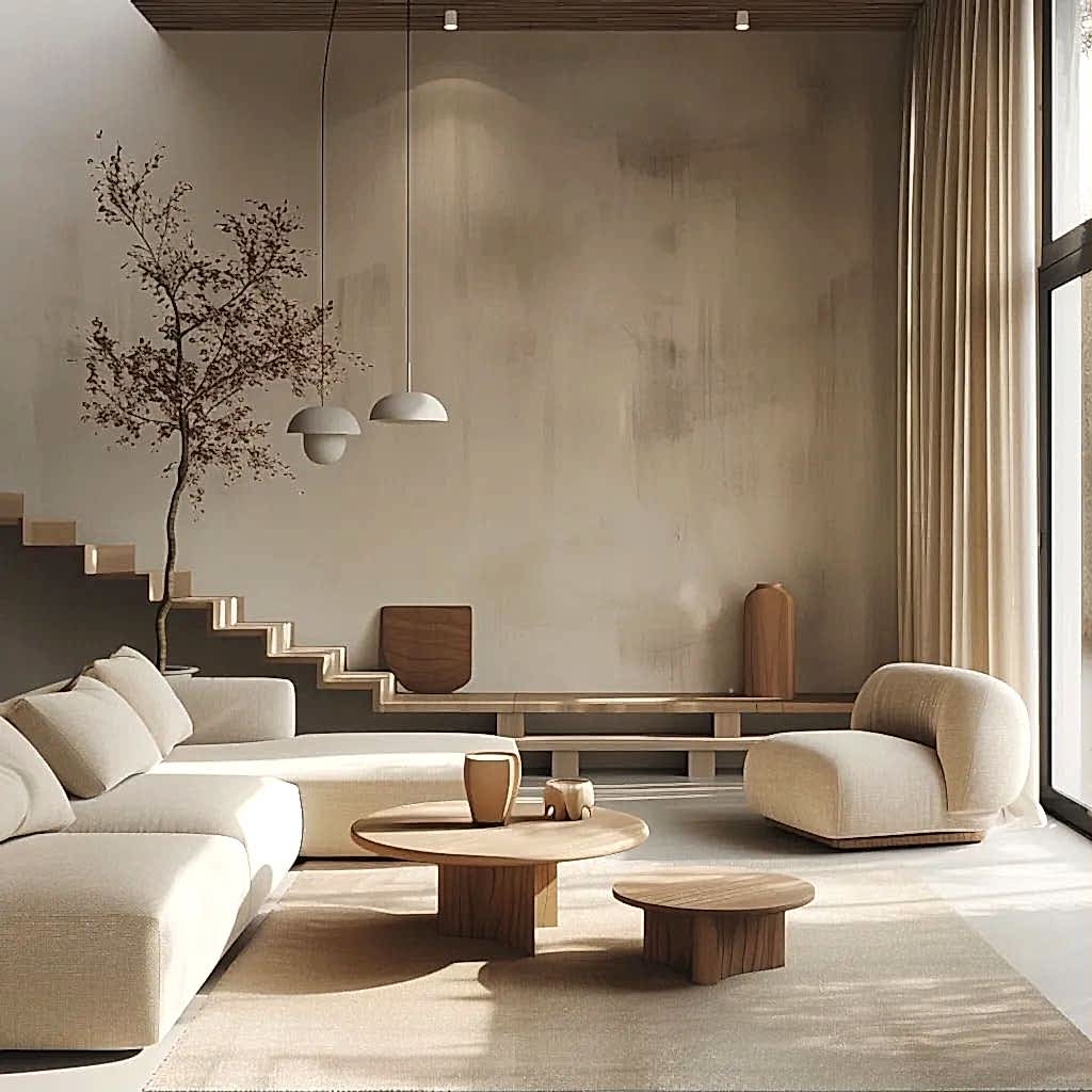 - Плавные формы мебели и предметов интерьера, вдохновленные природой, с акцентом на простоту и Пинап