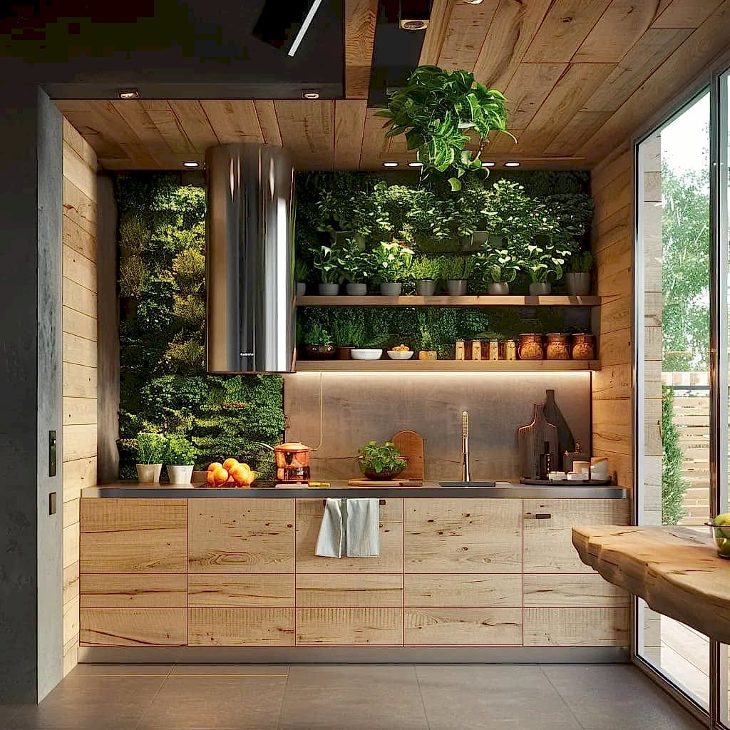 - Использование натуральных материалов, таких как дерево, камень, бамбук и прочие экологически чистые материалы.